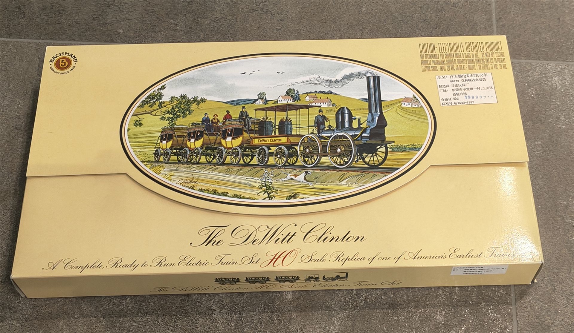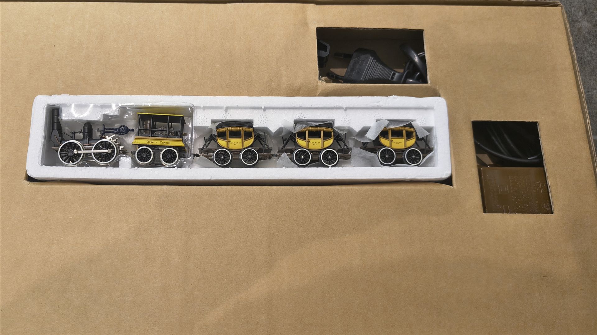 De Witt Clinton Zugset mit 0-4-0 Dampflokomotive und Tender sowie 3 Personenwagen, DC, analog