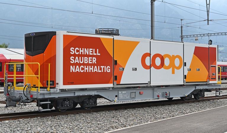 RhB Sb 65615 mit Klimacontainer "Coop"